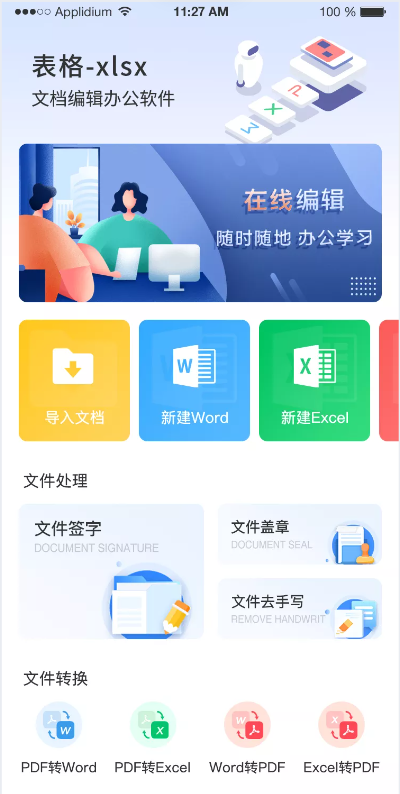 Excel文档编辑表格制作是一款集word文档编辑、excel表格制作、PPT制作、文件管理、PDF文档格式转换功能于一体的移动office办公软件.